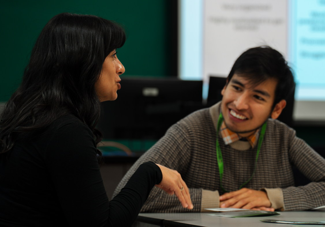 Two DIVERSE MSc students discussing at the Annual General Meeting: on the left, Andrea Guarino; on the right, Edilber Sebastián Guerrero Martínez.