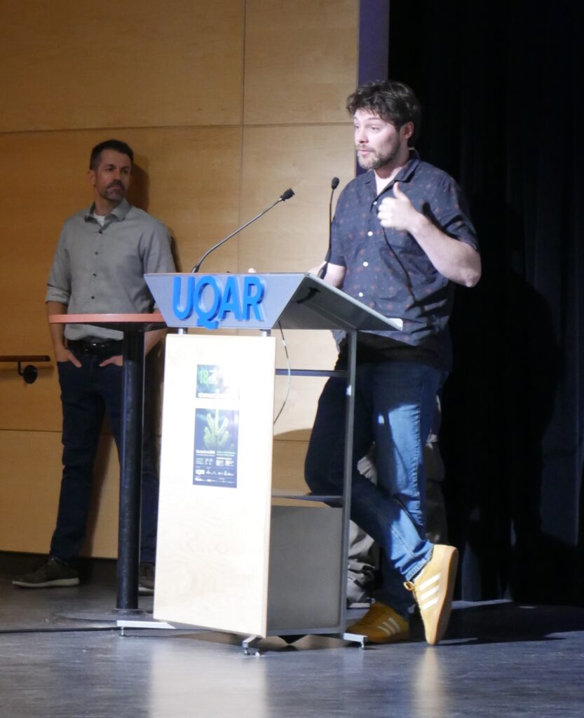 Les professeurs en début de carrière Morgane Urli et Olivier Villemaire-Côté ont eu l'occasion de présenter leurs programmes de recherche dans le cadre des séances plénières.
