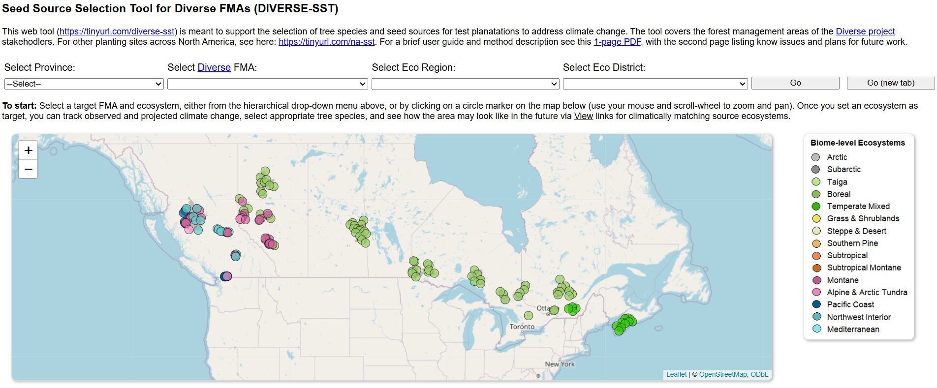 Outil de sélection des provenances de semences pour les unités d'aménagement des partenaires DIVERSE (DIVERSE-SST)