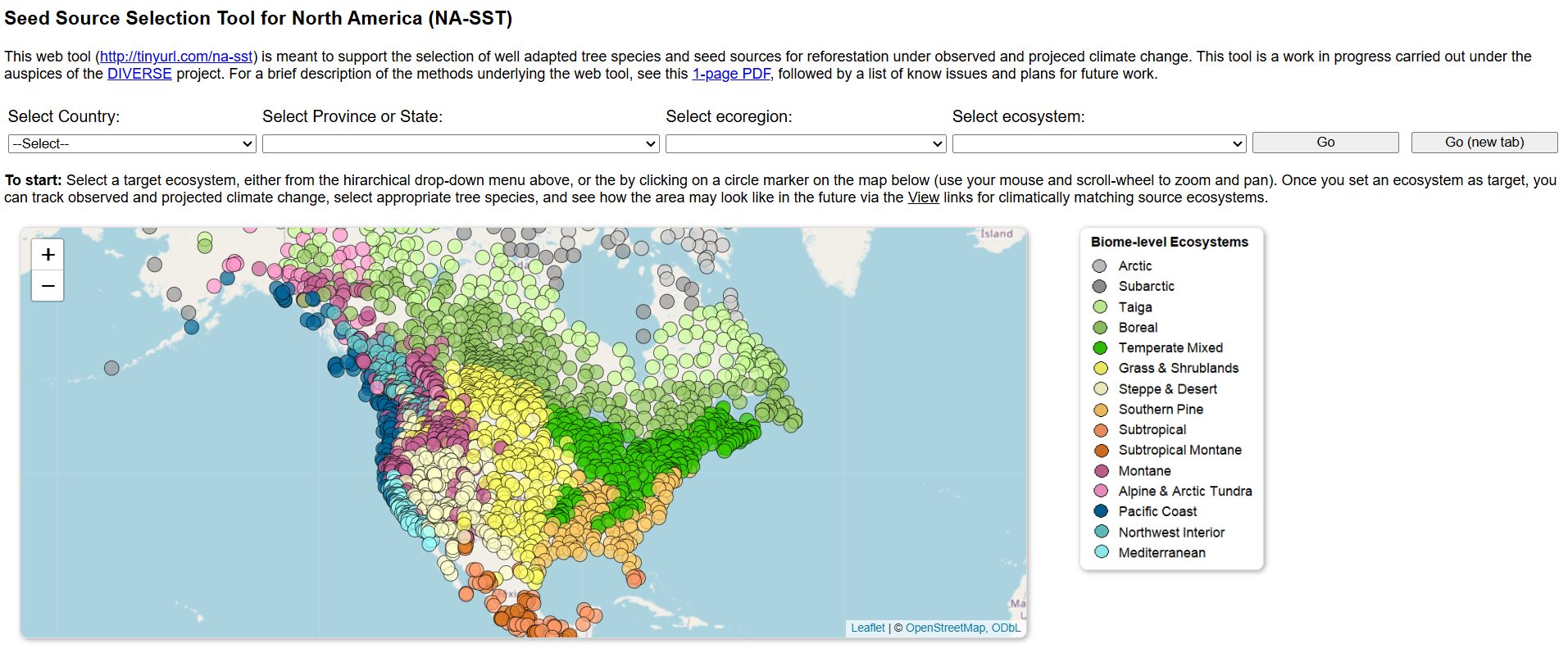 Outil de sélection des provenances de semences pour l'Amérique du Nord (NA-SST)